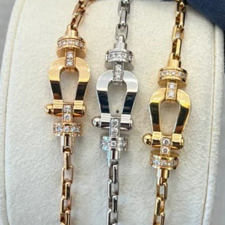 Home Fredd* Link bracelet Force 10 link Gold Horseshoe clasp bracelet-Interval zircon(F家链绳间钻马蹄扣手链)
