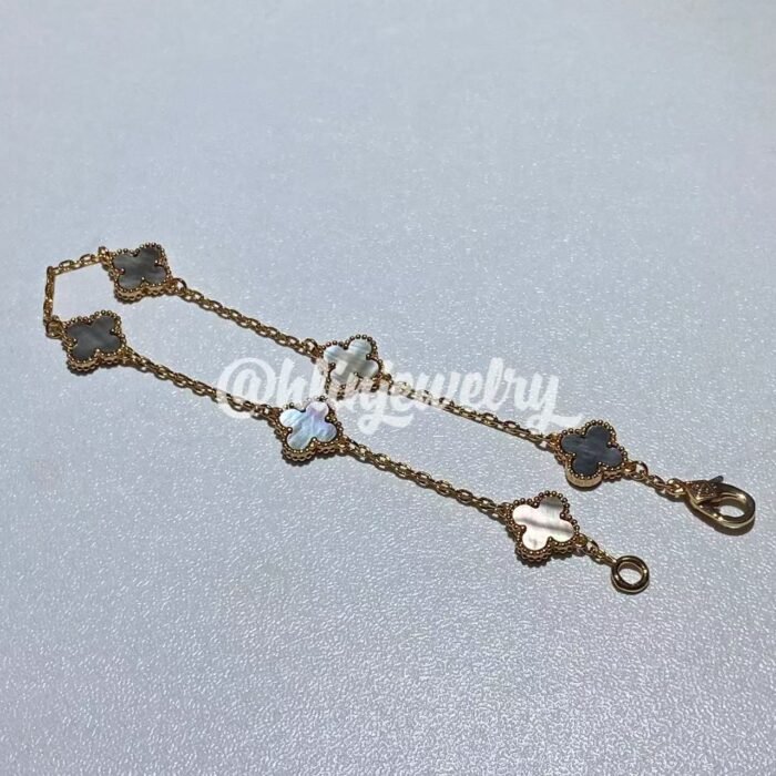 Home Van Cle* Bracelet Mini gray mother pearl 6 motifs bracelet(Mini灰贝母四叶草六花手链)
