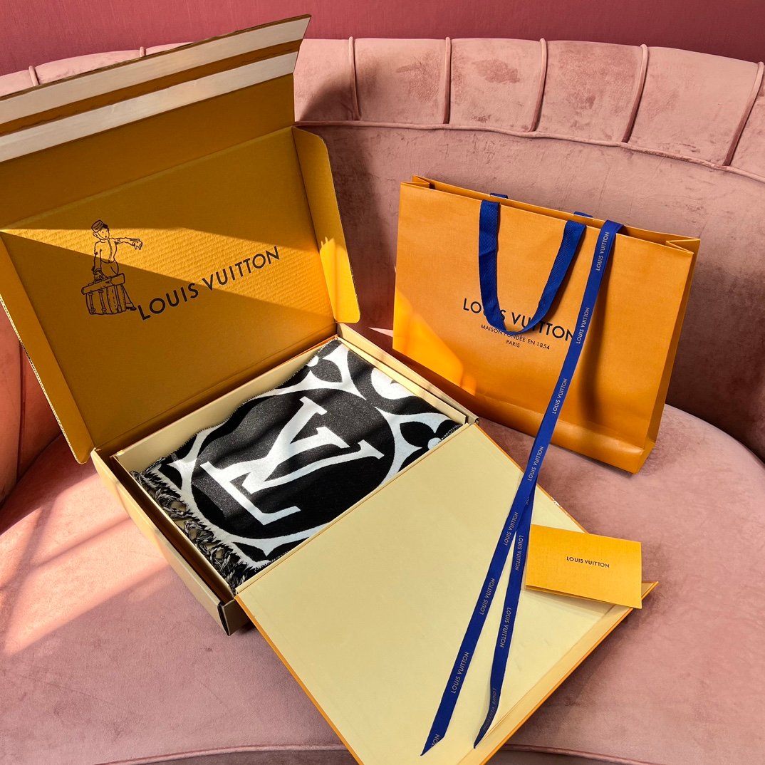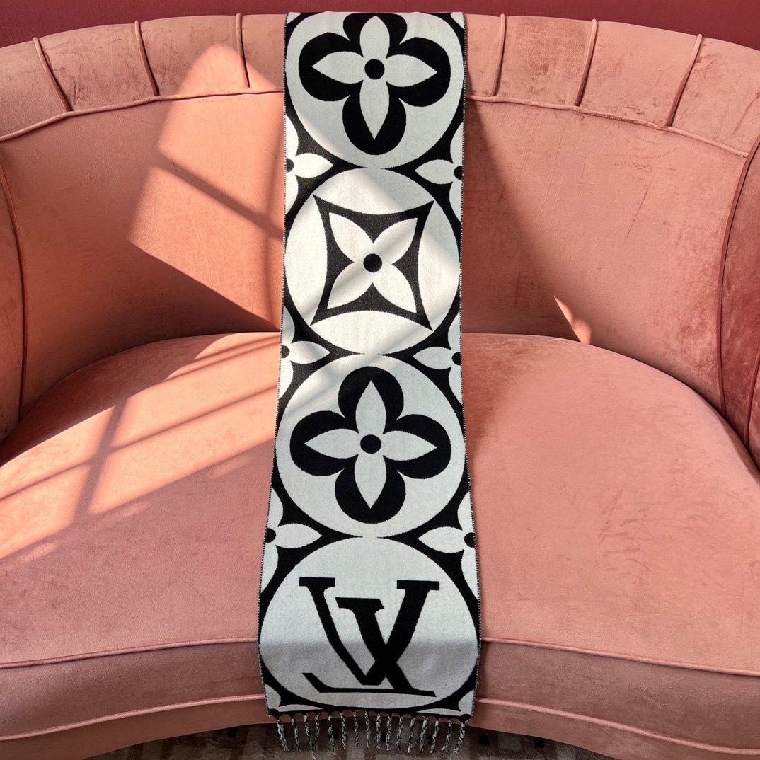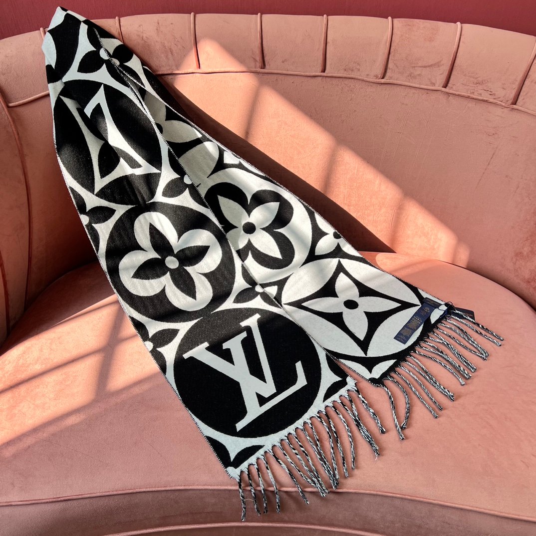 Home Scarf Louis Vuitto* New Wool Large Logo – Black and White(羊毛新款大LOGO-黑白)