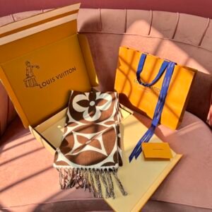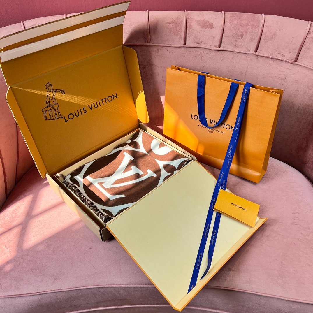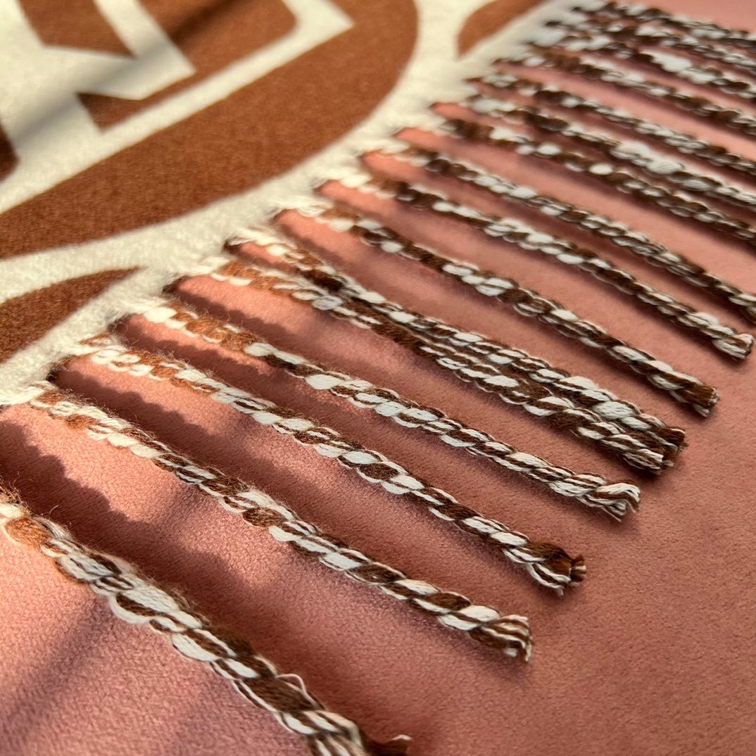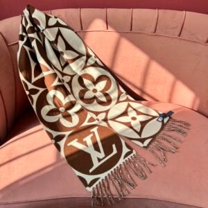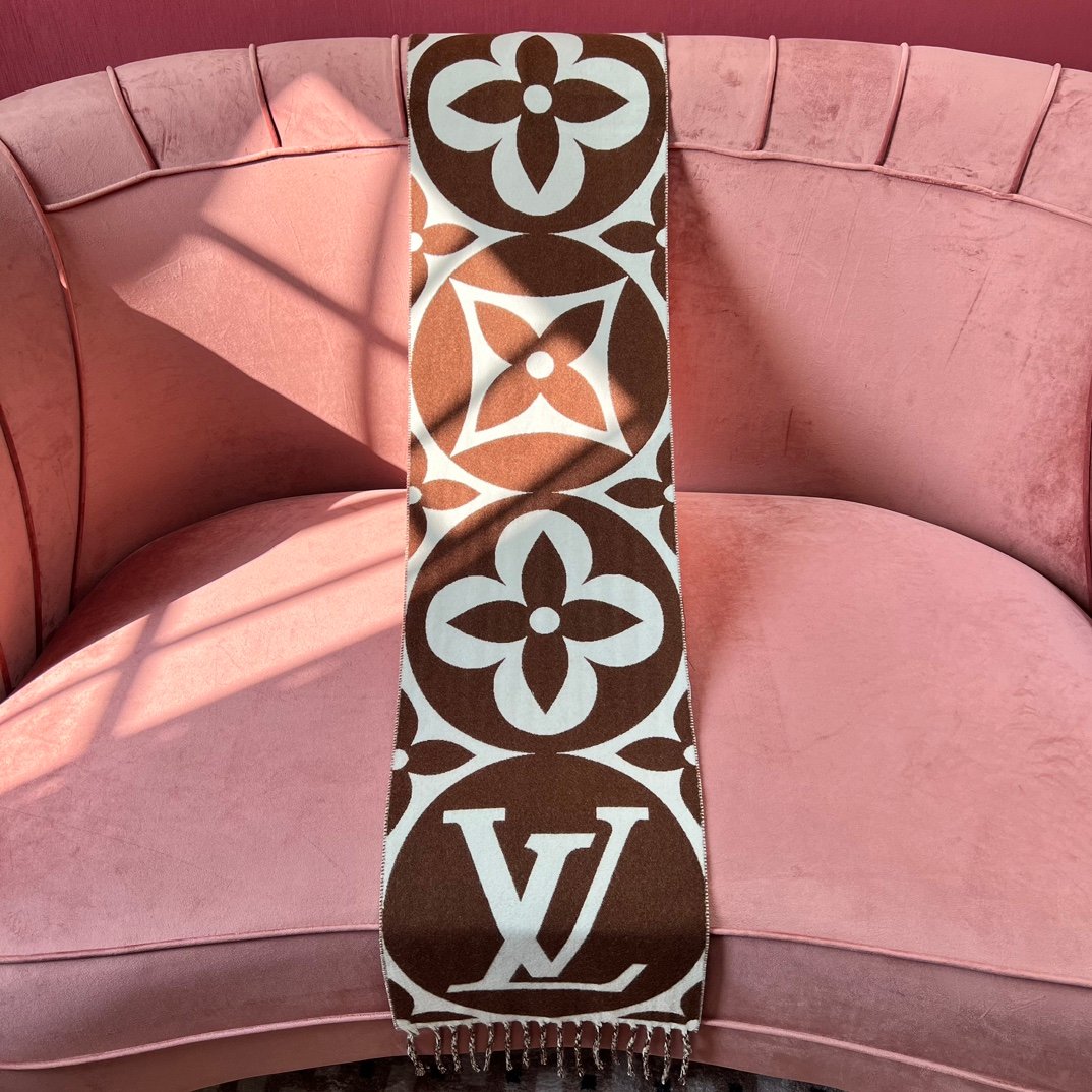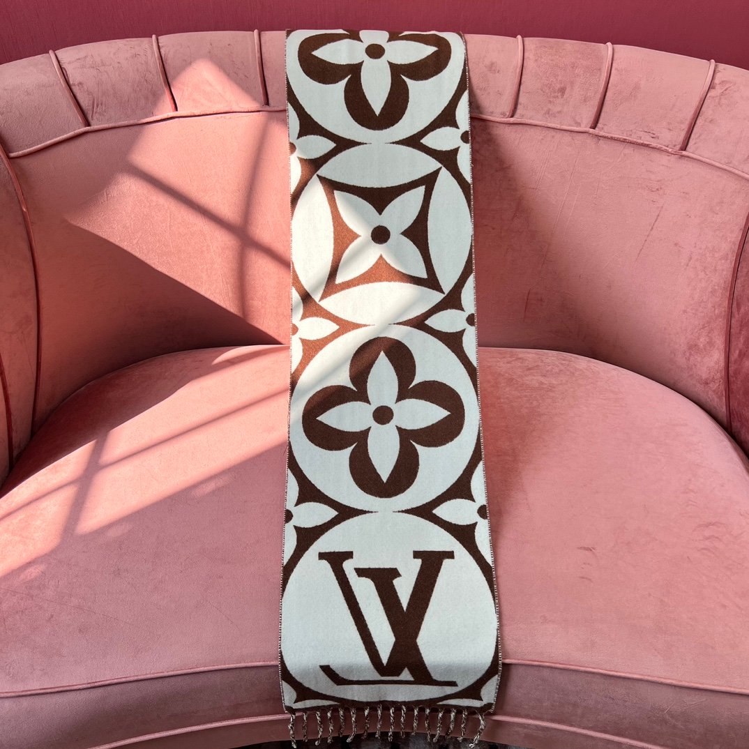 Home Scarf Louis Vuitto* New Wool Large Logo – Brown and White(羊毛新款大LOGO-棕白)
