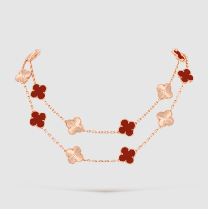 Rose Gold red chalcedony laser 20 motifs necklace(玫瑰金红玉髓镭射四叶草二十花项链) $250.00