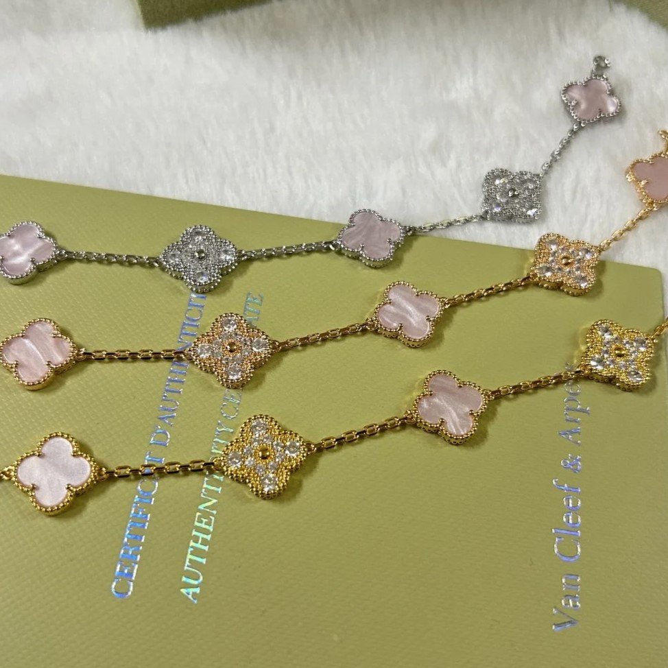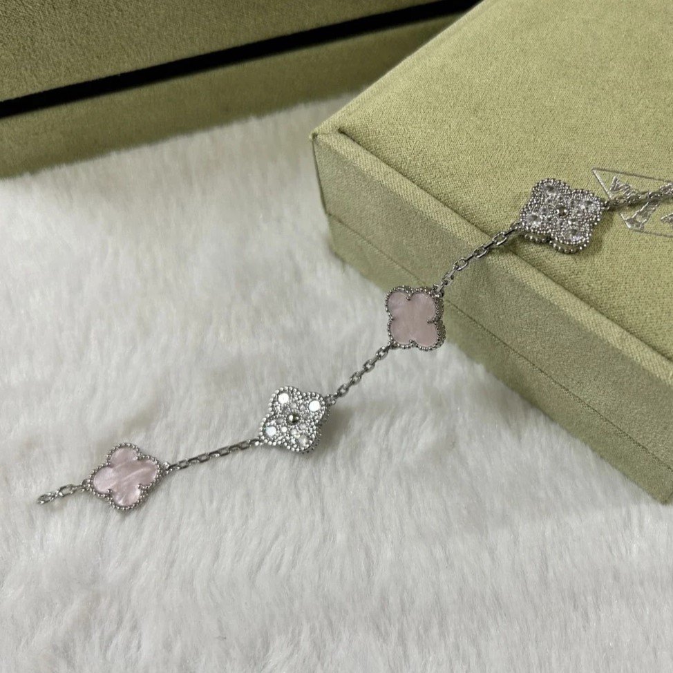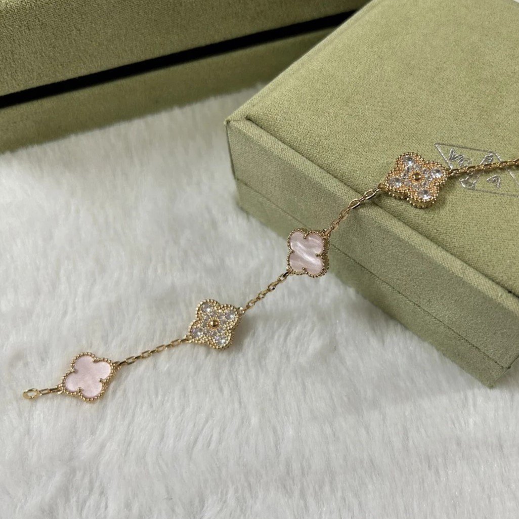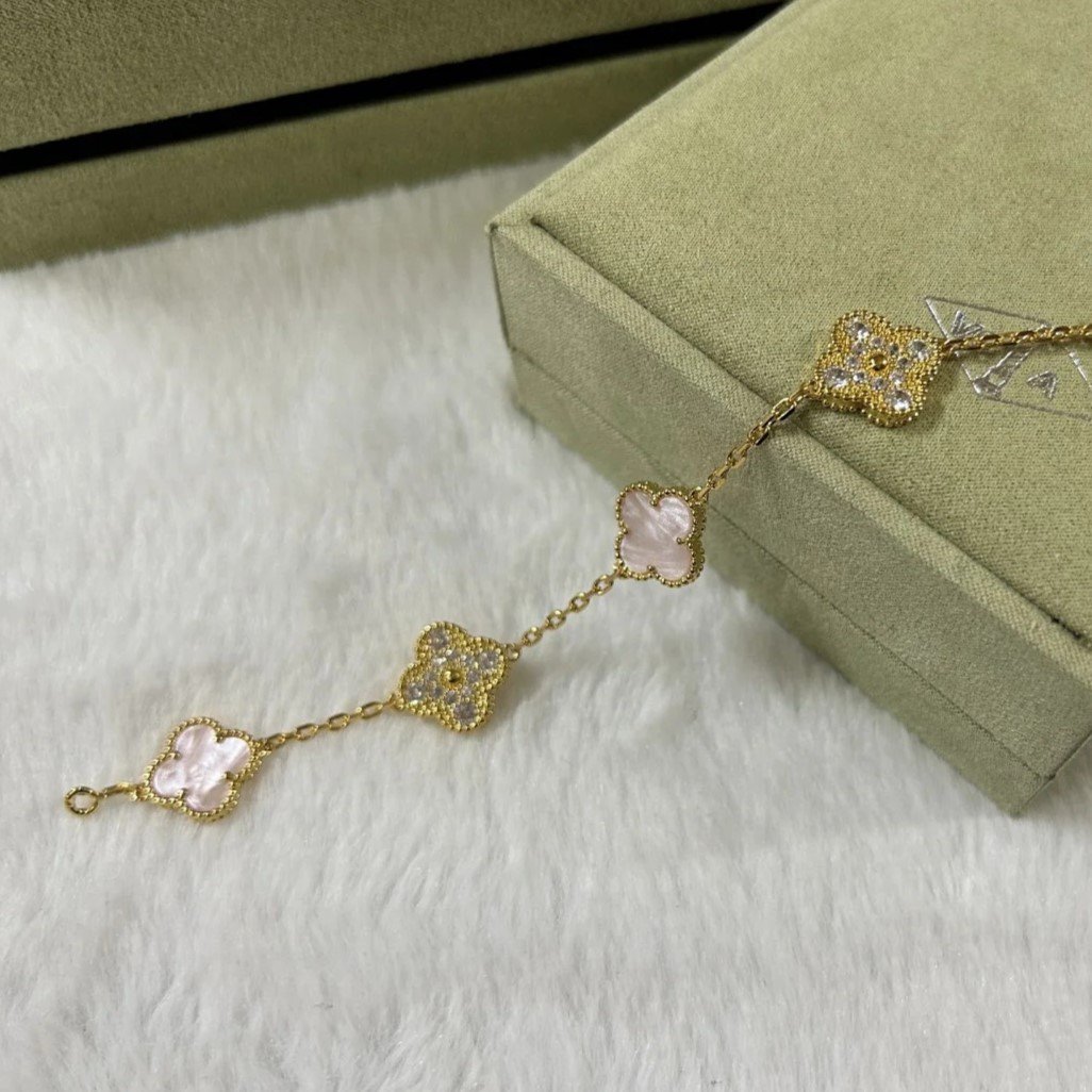 Home Van Cle* Bracelet Pink pearl 5 motifs bracelet- with zircon(粉贝母间钻四叶草五花手链)