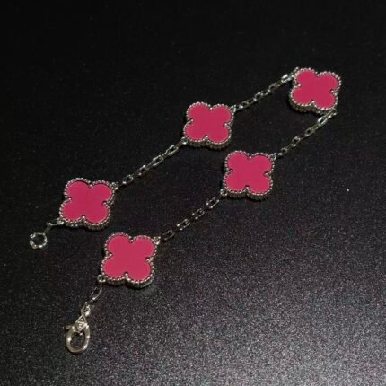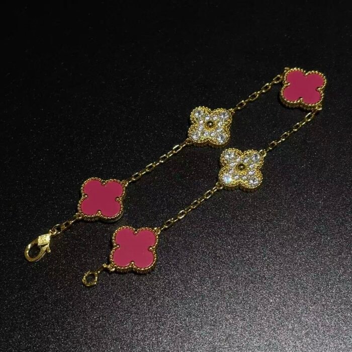 Home Van Cle* Bracelet Pink porcelain 5 motifs bracelet-with zircon(粉瓷釉间钻四叶草五花手链)