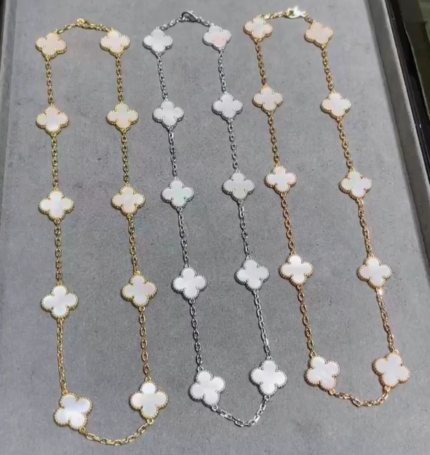 White pearl 10 motifs necklace(白贝母四叶草十花项链)
