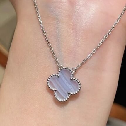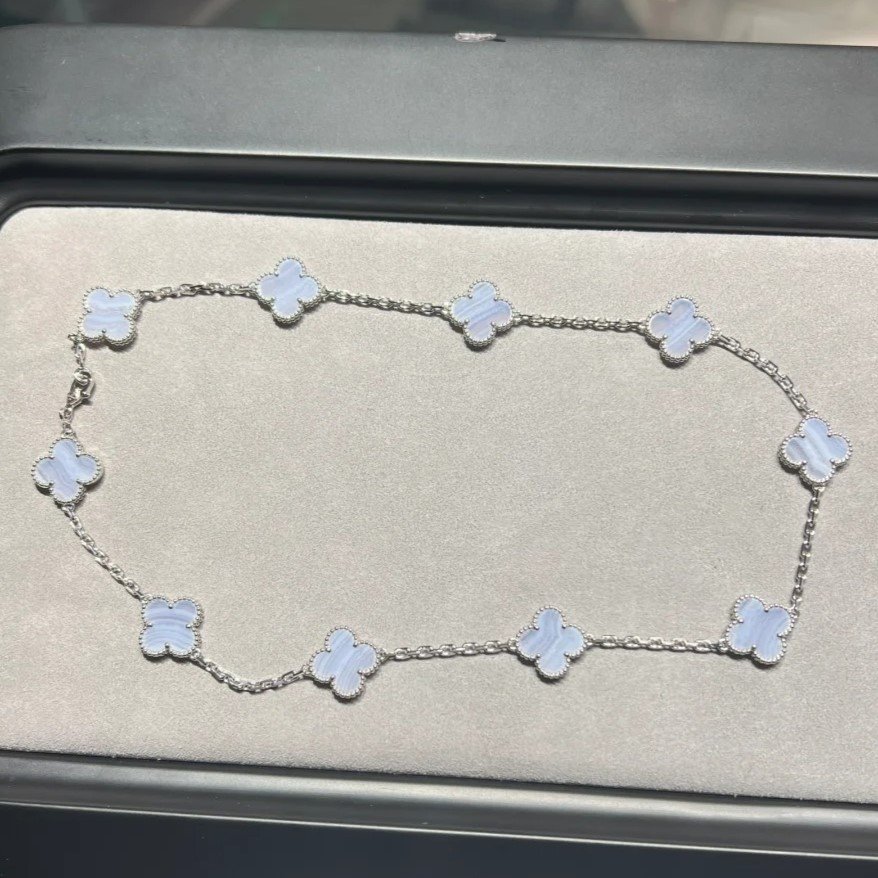 Home Van Cle* Necklace Purple chalcedony silver 10 motifs necklace(紫玉髓银色四叶草十花项链)