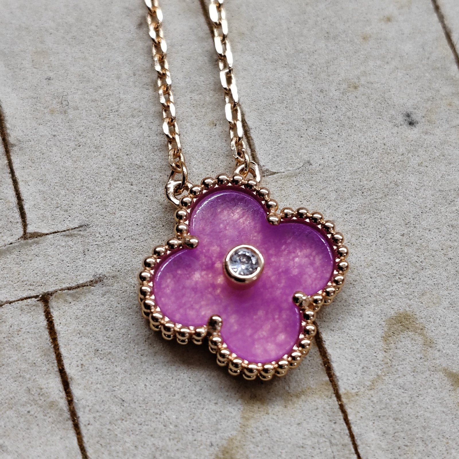 Purple thulite single motif necklace-with zircon(紫水晶间钻四叶草项链)