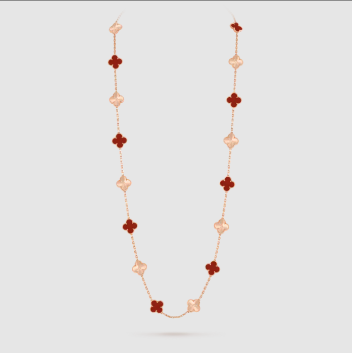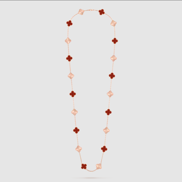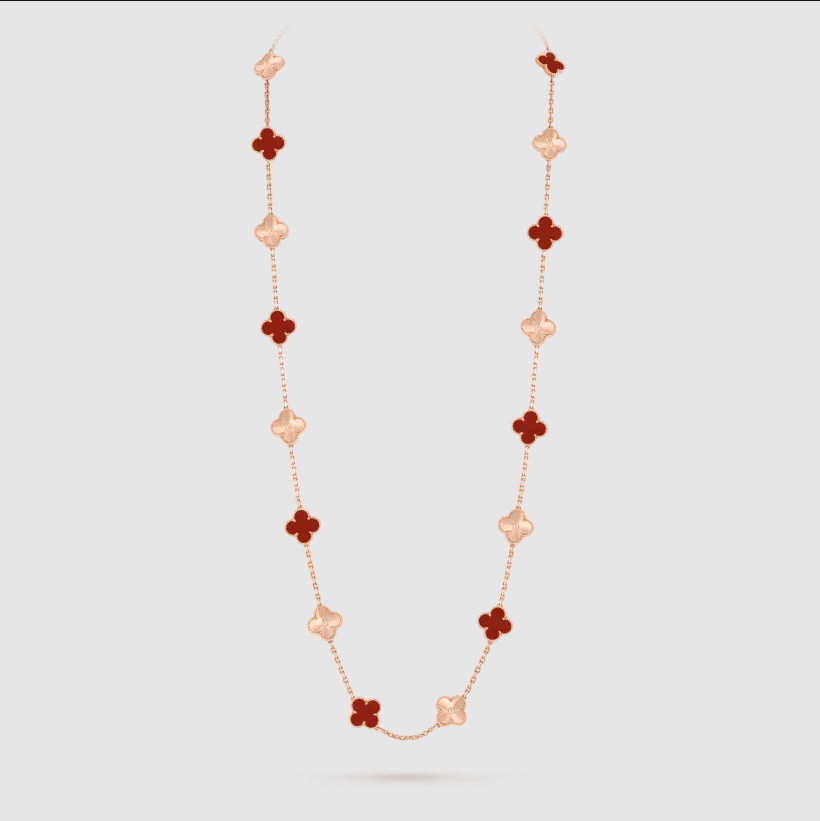 Home Van Cle* Necklace Rose Gold red chalcedony laser 20 motifs necklace(玫瑰金红玉髓镭射四叶草二十花项链)