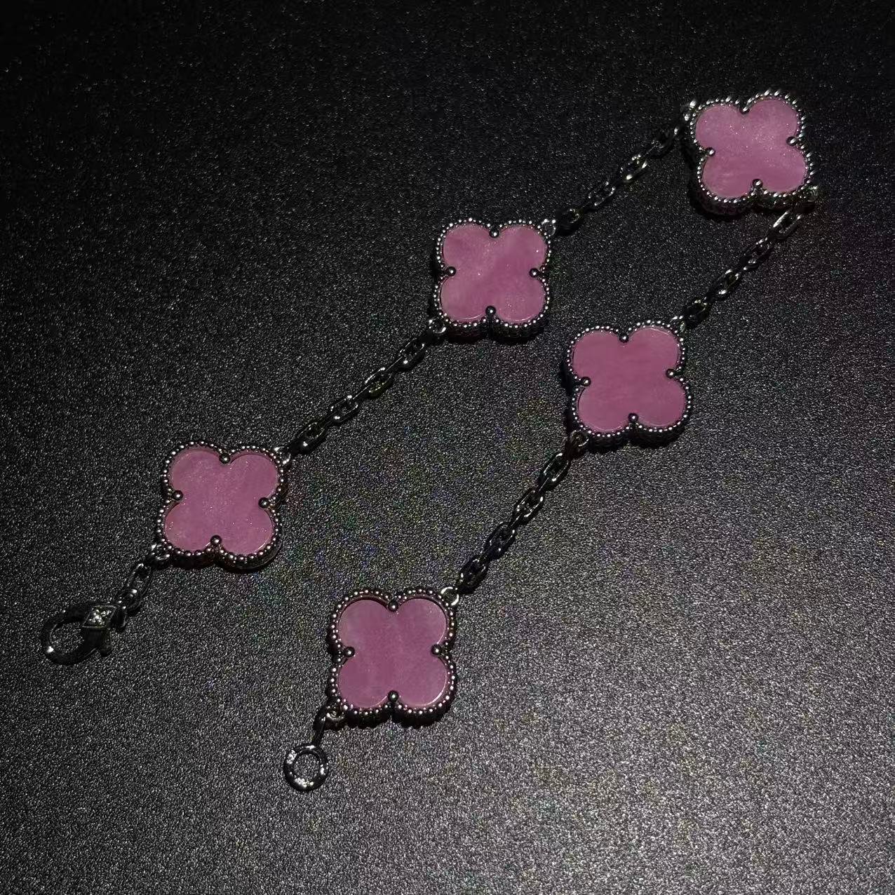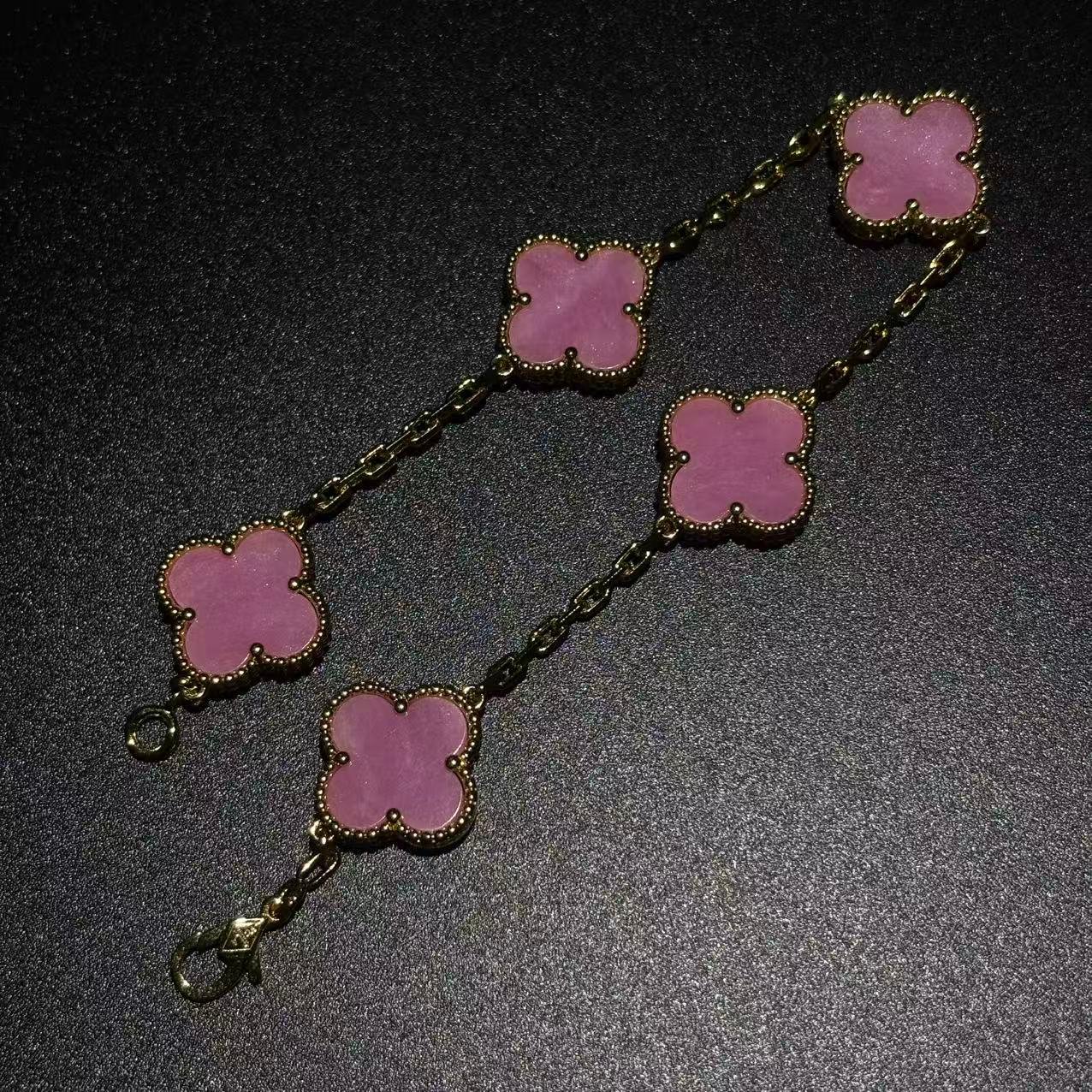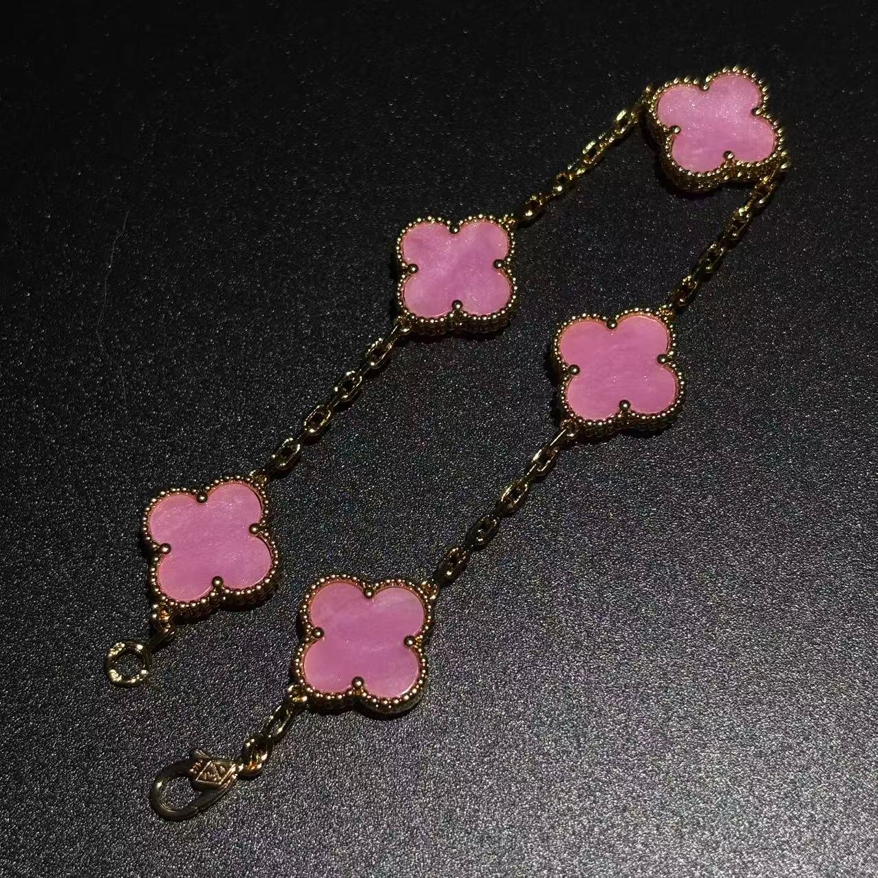 Home Van Cle* Bracelet Rose Quartz 5 motifs bracelet(蔷薇石四叶草五花手链)