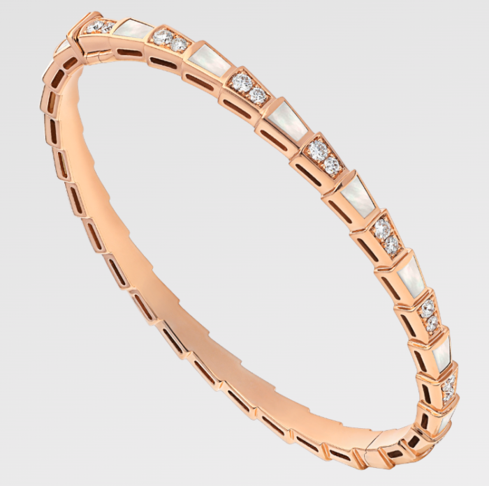 Serpenti Viper single-band half-stone and half-mother-of-pearl bracelet(宝家Serpenti Viper半钻半贝母单圈手镯)