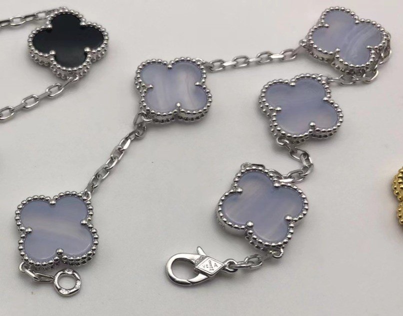 Home Van Cle* Bracelet Silver chain Purple Chalcedony 5 motifs bracelet(银色紫玉髓四叶草五花手链)