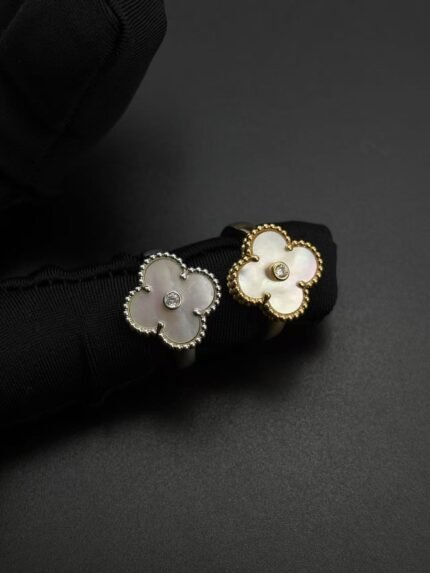 White mother pearl motifs ring with stone(白贝母带钻四叶草单花戒指) $65.00
