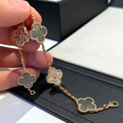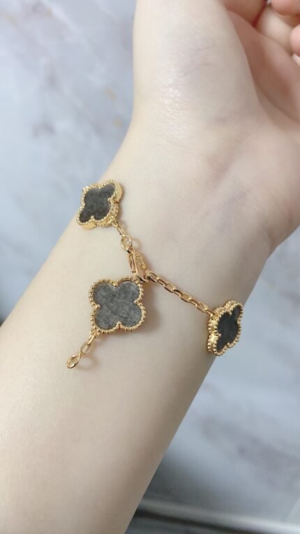 Gray pearl rose gold 5 motifs bracelet(灰贝母玫瑰金四叶草五花手链)