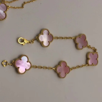 Pink pearl 5 motifs bracelet(粉贝母四叶草五花手链)