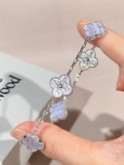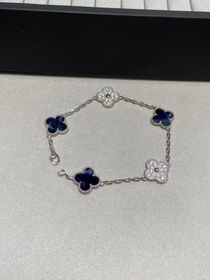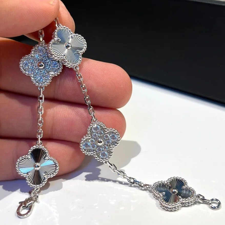 Home Van Cle* Bracelet Silver laser 5 motifs bracelet- with zircon(银色镭射间钻四叶草手链)