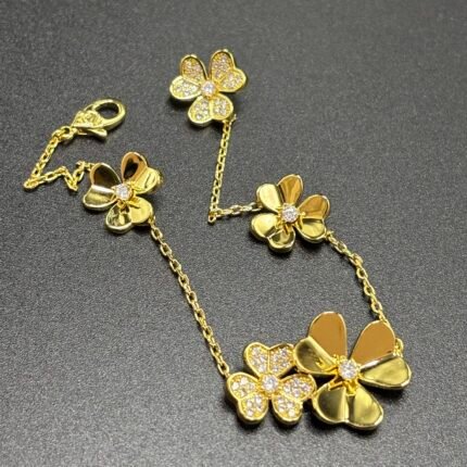 Yellow Gold Irregular 5 clover Bracelet(金色三叶草不规则五花手链)