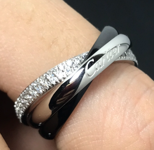 三环镶钻银黑戒指