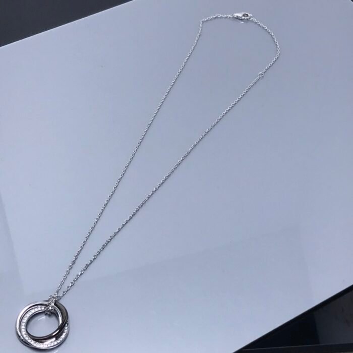 Three-ring diamond silver rose necklace(卡家三环镶钻银玫色项链)