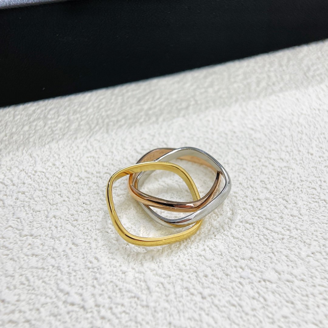 Home Cartie* Ring Three-ring three-color small square rings(三环三色小方戒指)