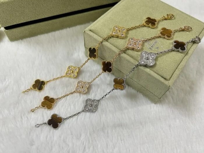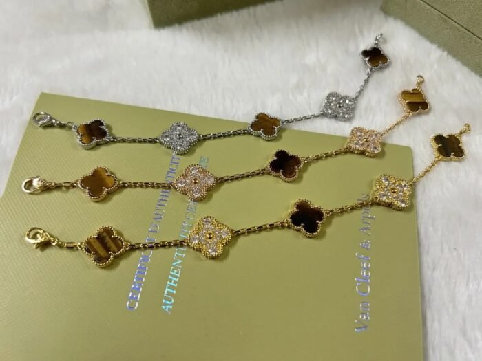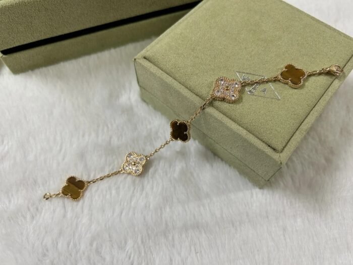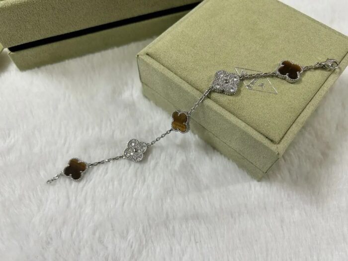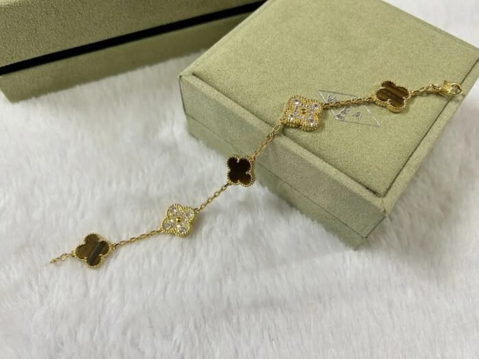 Home Van Cle* Bracelet Tiger eyes 5 motifs bracelet- with zircon(虎眼石间钻四叶草五花手链)