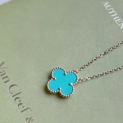Turquoise silver single motif necklace(绿松石银色四叶草单花项链) $65.00