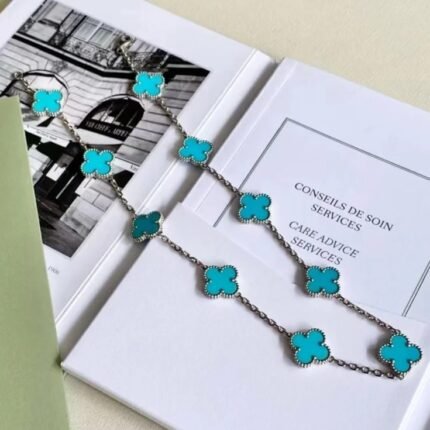 Turquoise 10 motifs necklace(绿松石四叶草十花项链) $100.00