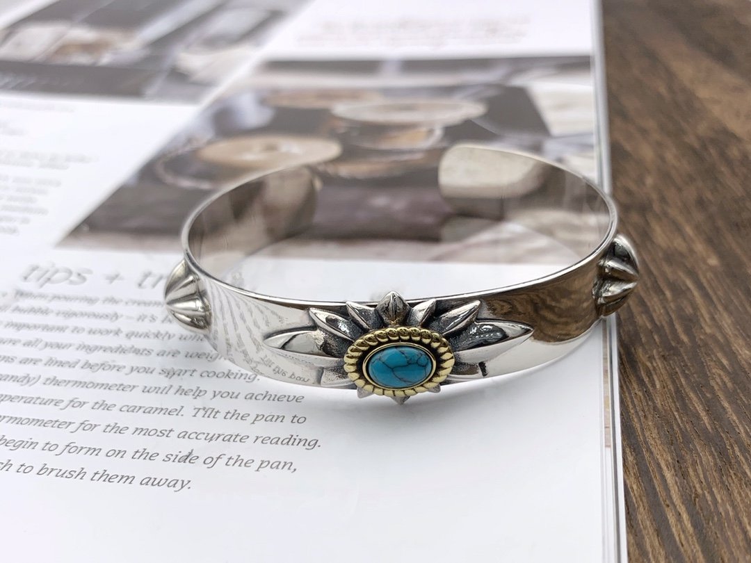Glossy inlaid turquoise open bracelet(高桥光面镶嵌松石)