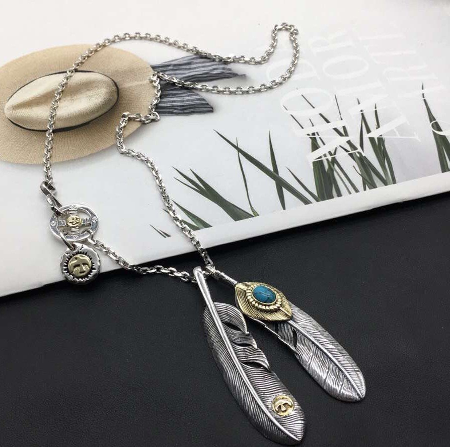 Home Goro* Necklace Turquoise feather set chain(高桥绿松石羽毛套链)