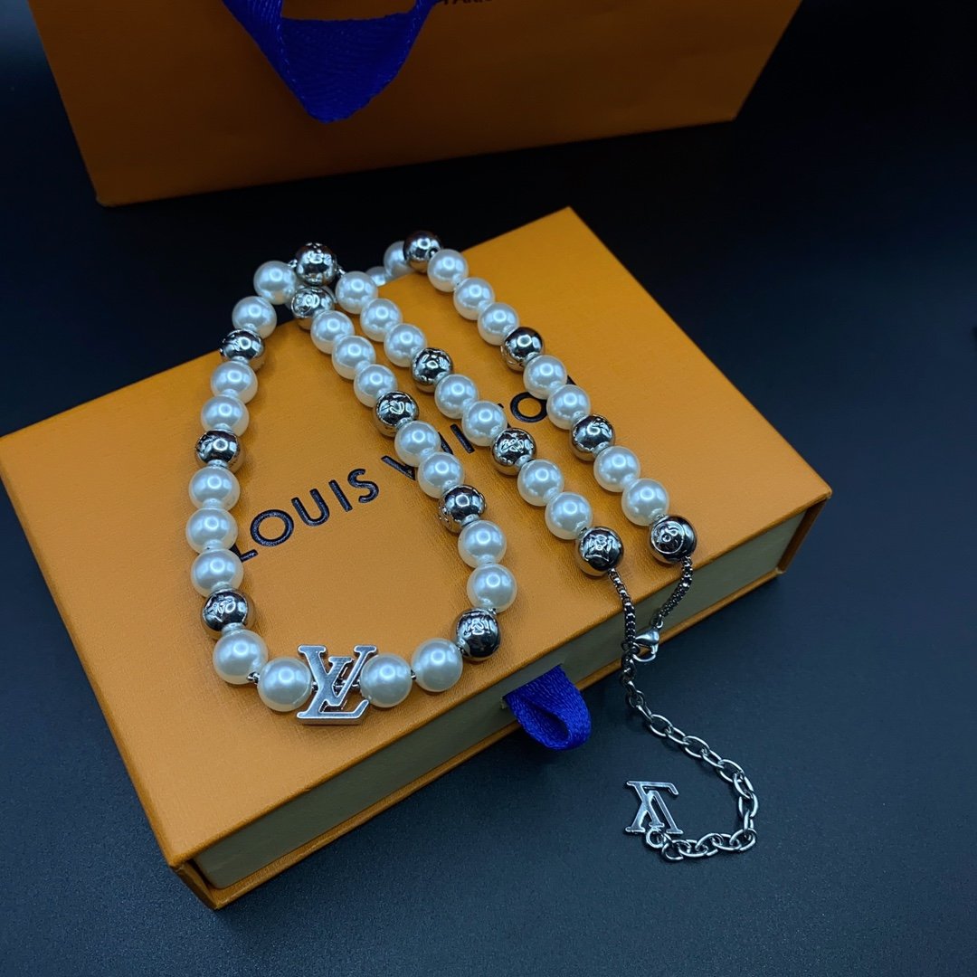 Home Louis V* Bracelet White faux pearl necklace bracelet(驴牌白色人造珍珠项链手链)