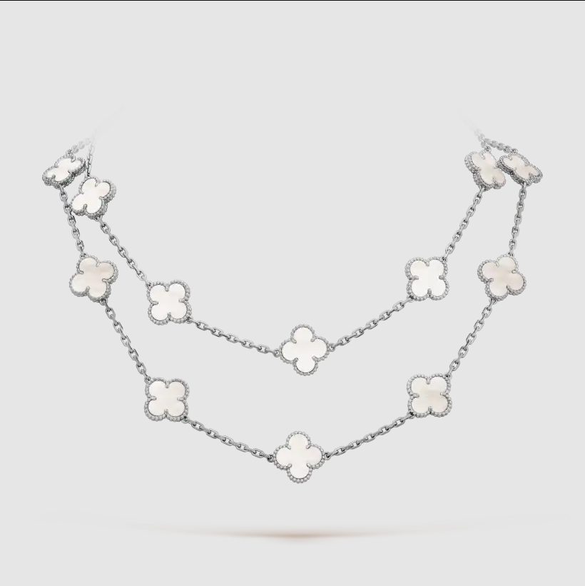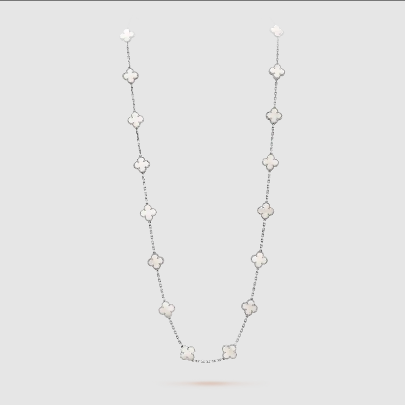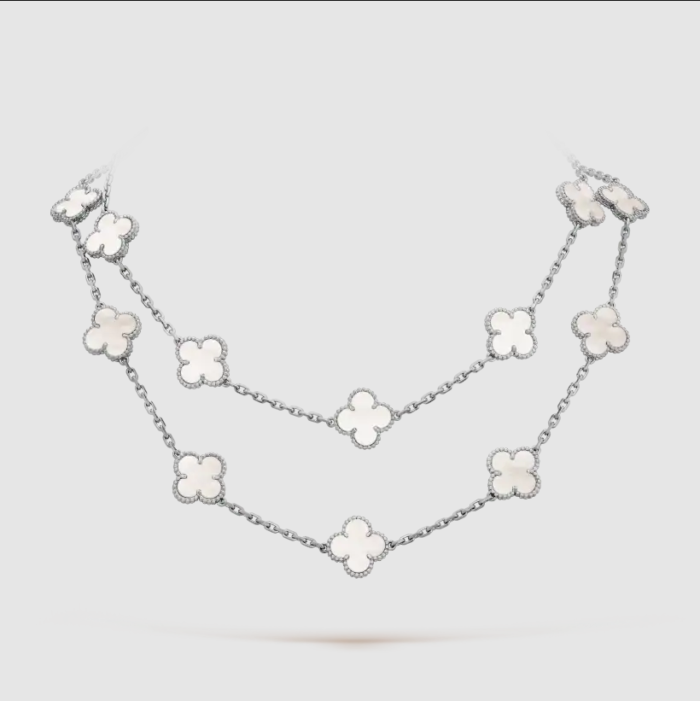Home Van Cle* Necklace White gold chain white pearl 20 motifs necklace(银色白贝母四叶草二十花项链)