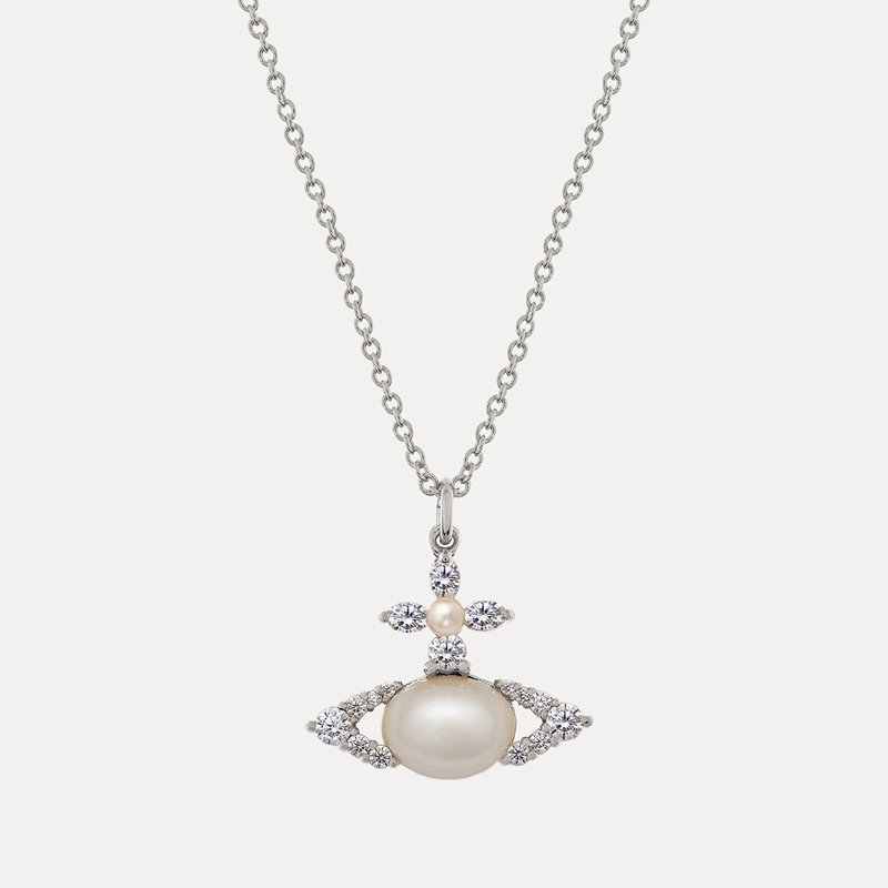Home Vivi Necklace White Gold Elliptical Pearl Necklace(西太后椭圆珍珠项链-白金色)