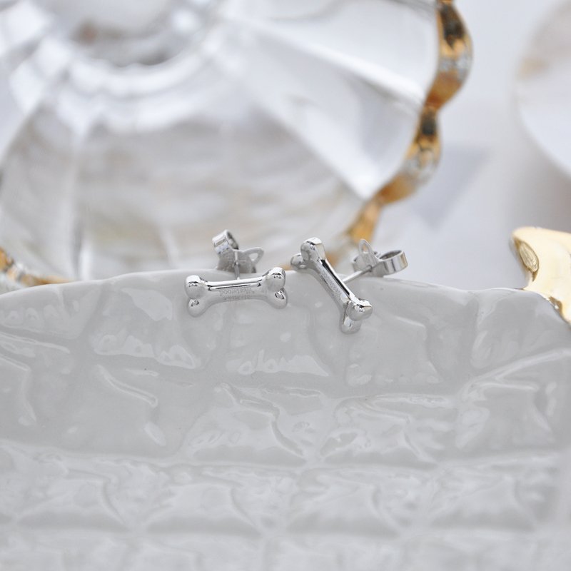 White gold glossy small bone earrings(西太后光面小骨头耳钉 白金色)