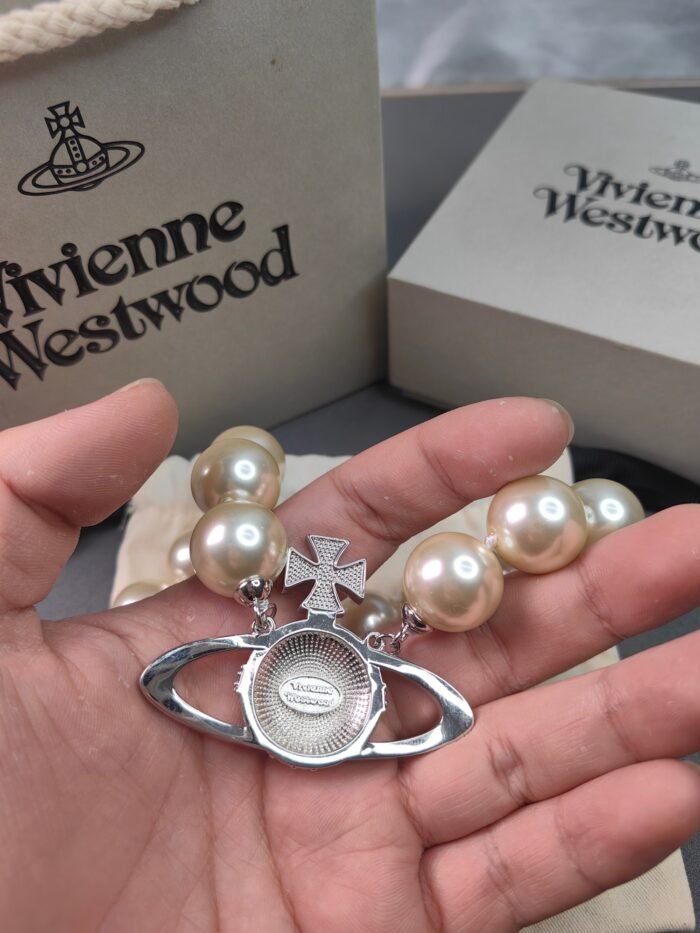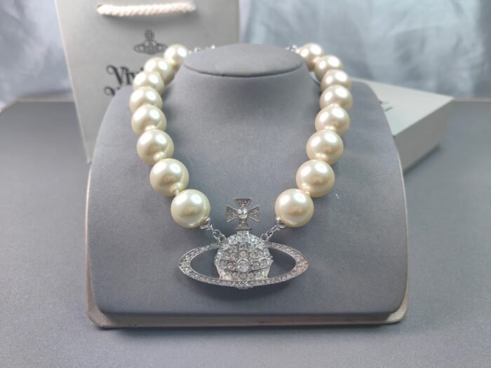 Home Vivi Necklace White Gold Saturn Giant Pearl Collar Necklace(西太后土星巨型珍珠锁骨项链—白金色)
