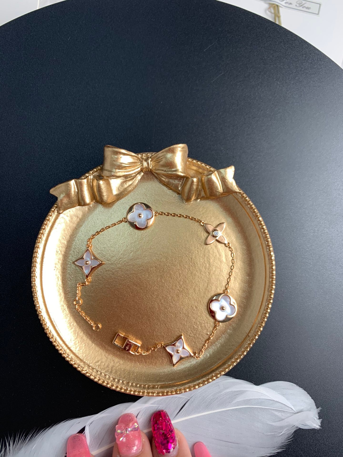 Home Louis V* Bracelet White mother-of-pearl logo 5 motif bracelet(驴牌白贝母logo五花手链)