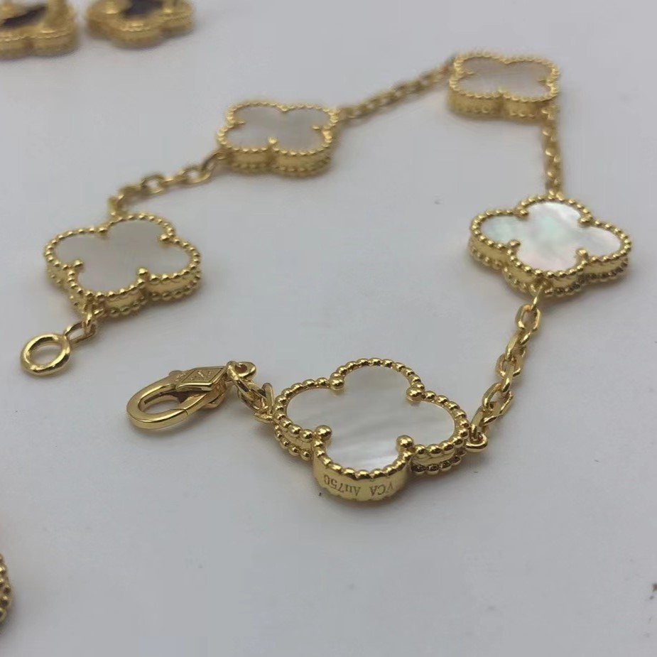Home Van Cle* Bracelet White pearl 5 motifs bracelet(白贝母四叶草五花手链)