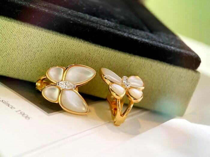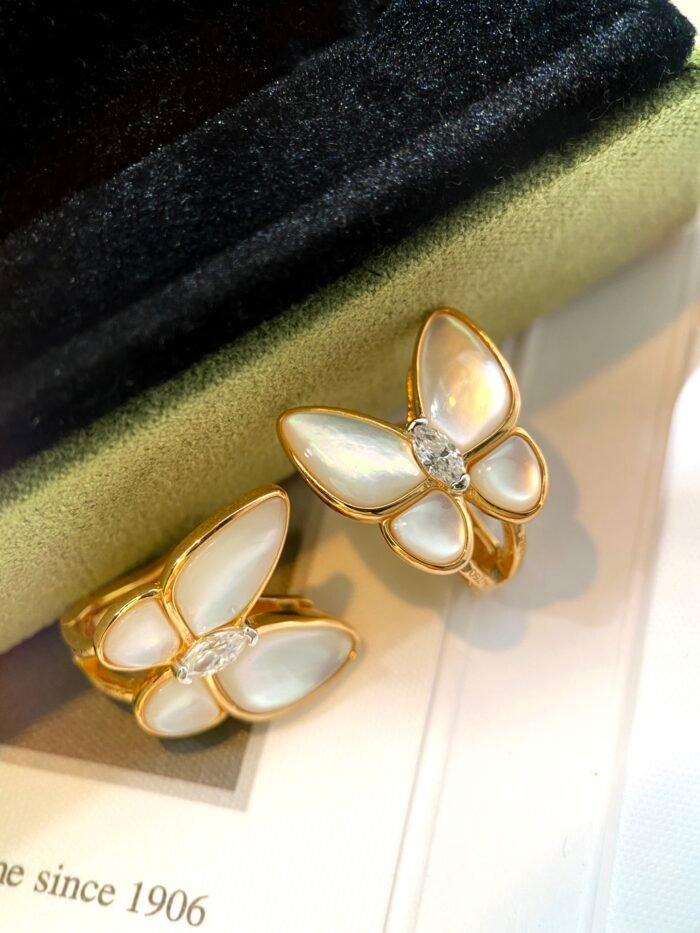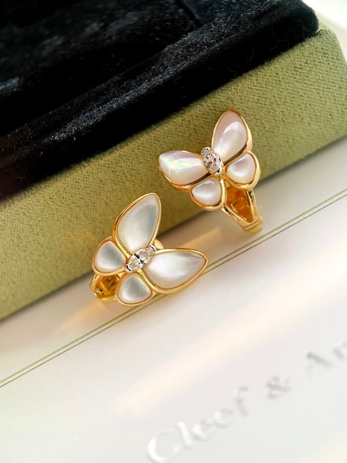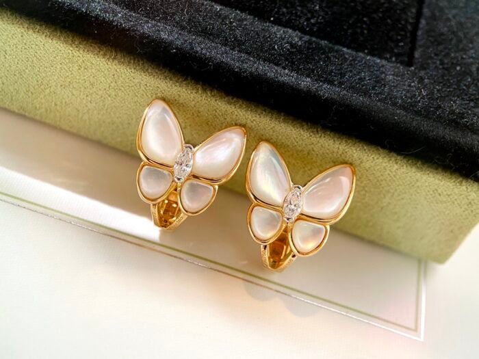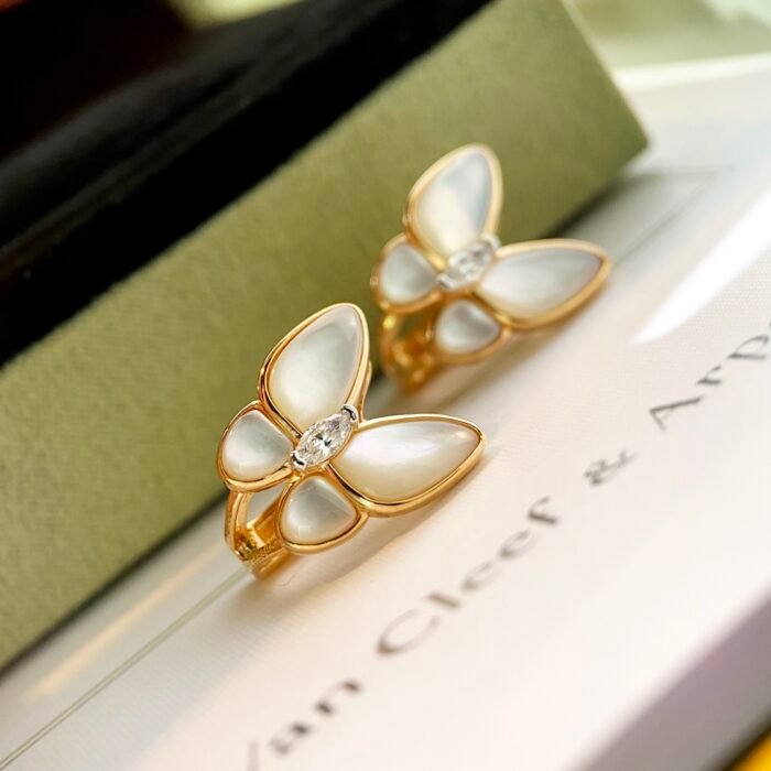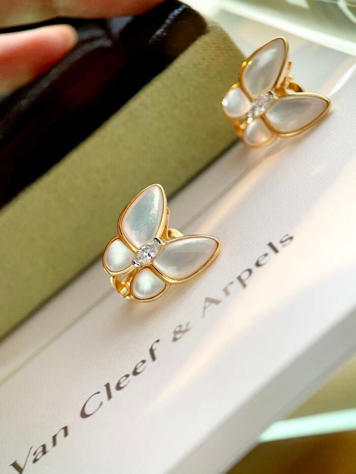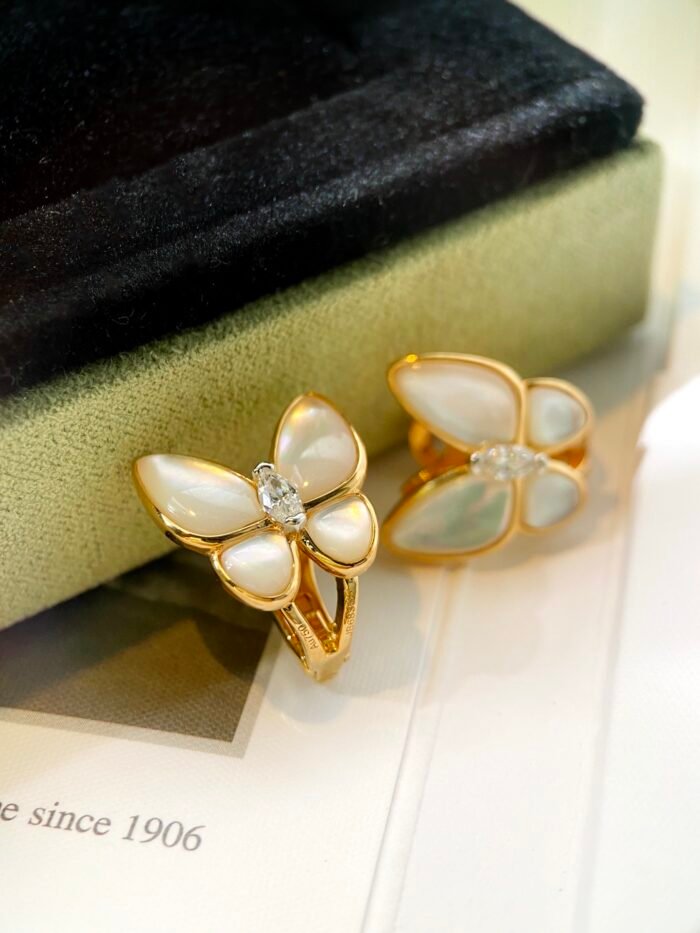 Home Van Cle* Earring White shell rose gold butterfly earrings(玫瑰金白贝蝴蝶耳拍)