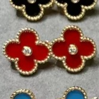 Red carnelian motif earring-with diamond(红玉髓带钻四叶草单花耳拍)
