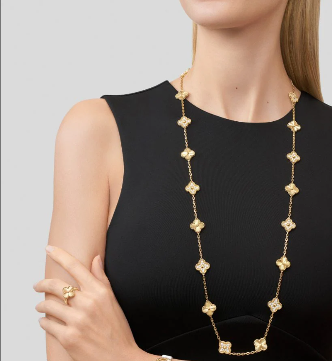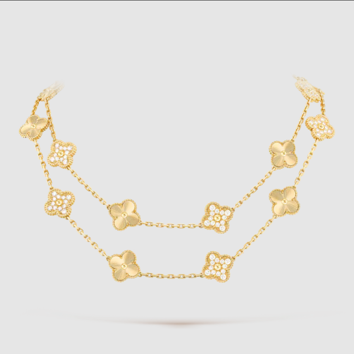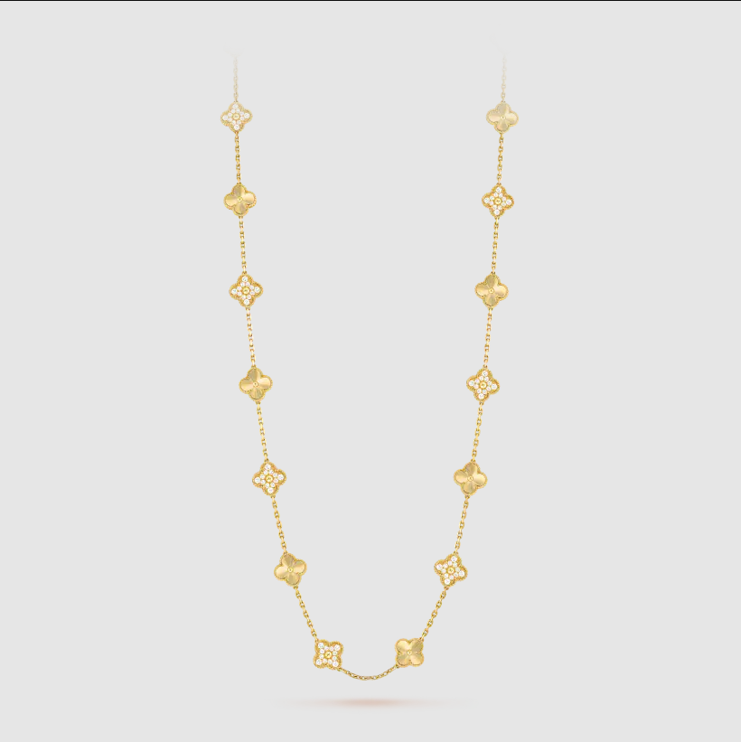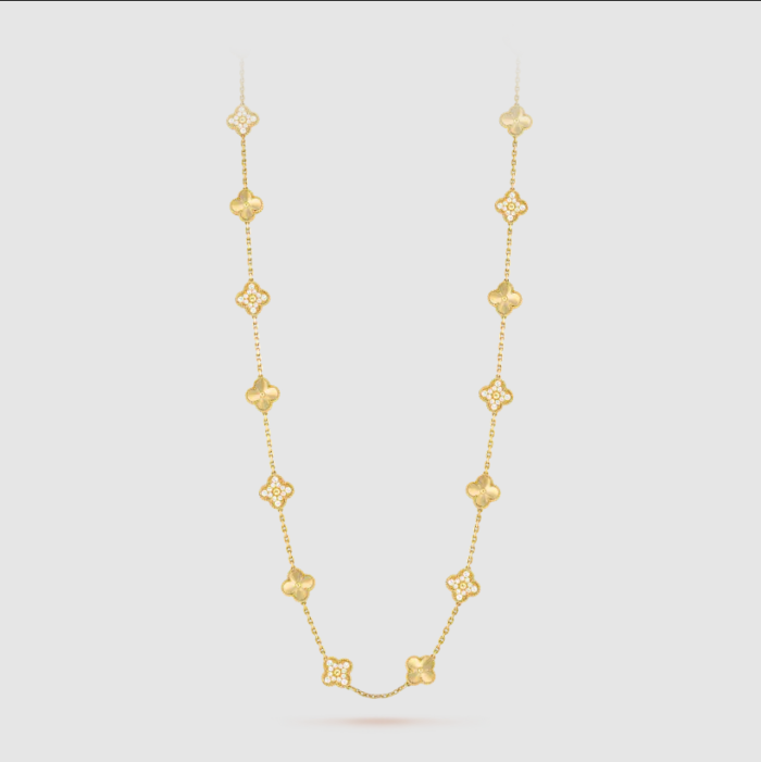 Home Van Cle* Necklace Yellow Gold laser diamond 20 motifs necklace(金色镭射间钻四叶草二十花项链)