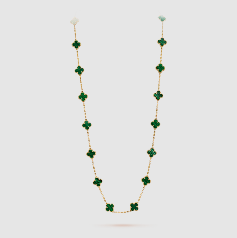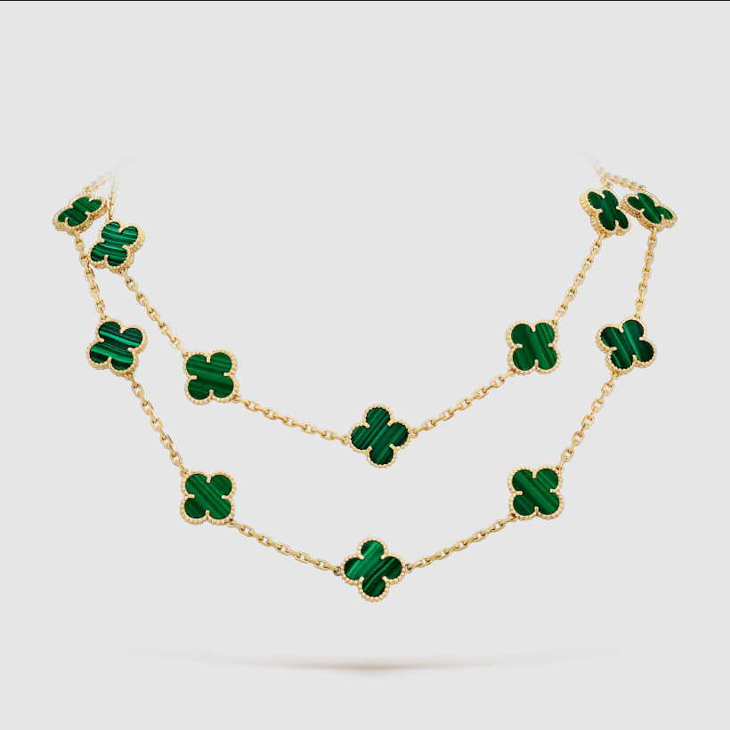 Home Van Cle* Necklace Yellow Gold malachite 20 motifs necklace(金色绿玛瑙四叶草二十花项链)
