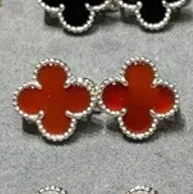 Red carnelian motif earring(红玉髓四叶草单花耳拍)