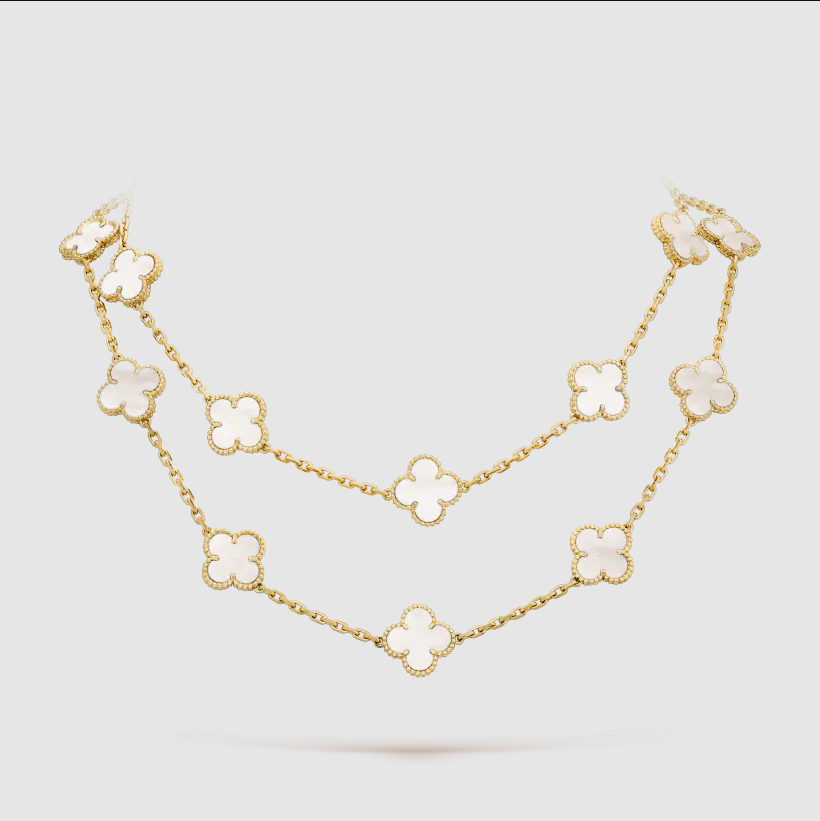 Home Van Cle* Necklace Yellow Gold white pearl 20 motifs necklace(金色白贝母四叶草二十花项链)