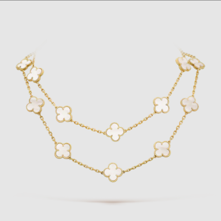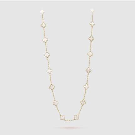 Yellow Gold white pearl 20 motifs necklace(金色白贝母四叶草二十花项链)